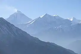 Dhaulagiri II (Nepali: धौलागिरी २) is a mountain in Gandaki Province, Nepal. It is part of the Dhaulagiri mountain range in north-central Nepal at an elevation of 7,751 metres (25,430 ft) and with the prominence of 2,391 metres (7,844 ft).[1] Dhaulagiri II is the second highest mountain in the Dhaulagiri mountain range and it was first climbed by an Austrian-American expedition from its northwest side.