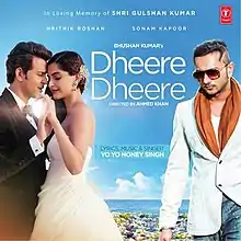 "Dheere Dheere" is a song by the Indian recording artist Yo Yo Honey Singh. He recorded this song on his iPhone and composed it on his laptop during his Bipolar disorder.[1] The track was released on 31 August 2015 as a single on Hotstar.[2] It is a cover version of the Bollywood filmi-ghazal song "Dheere Dheere Se" music by Nadeem–Shravan, lyrics by Rani Malik, Singing by Anuradha Paudwal & Kumar Sanu,[3][4] from the 1990 all-time blockbuster Bollywood film soundtrack album Aashiqui.[2] It was released on YouTube by T-Series on 2 September 2015.[5]