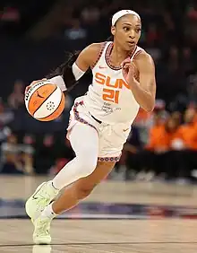 - ↑ Mike Mavredakis (May 19, 2021). "Looks like Sun rookie DiJonai Carrington can give her coach a lesson or two". Hartford Courant. Retrieved June 30, 2021.