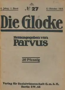 Die Glocke Sozialistische Wochenschrift was a political magazine established in 1915 by the maverick socialist Alexander Parvus to argue that socialists should support the German war effort. It attracted Marxist theoreticians who had previously been regarded as left-wing. It was published until 1925.[1]