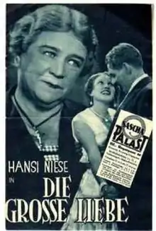 The Great Love (German: Die große Liebe) is a 1931 Austrian drama film directed by Otto Preminger, the first of his career. The screenplay by Ernst Redlich and Johannes Riemann is based on a true story, and was adapted from the play by Fritz Gottwald and Rudolph Lothar.