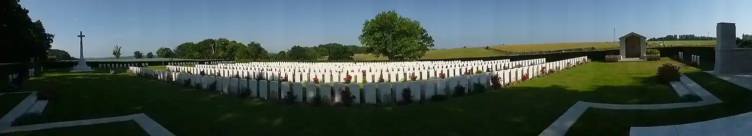 Panoramic photograph of the Canadian War Cemetery in Dieppe.