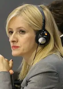 Vukomanović left the Socialist Party in October 2016. She did not provide a reason for her departure, though media reports noted that she had previously been reprimanded for a public quarrel with party official Ivana Petrović.[19][20] After leaving the party, she lost her committee roles and her position as head of Serbia's delegation to the OSCE PA.[21] She later accused the Socialist Party of having lost its identity and become a vassal of Progressive Party leader Aleksandar Vučić.[22]