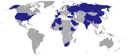 This is a list of diplomatic missions of the Gambia.[1] The Republic of the Gambia became independent from Britain in 1965. As a relatively small country in West Africa, the Gambia has only a limited number of foreign missions abroad.