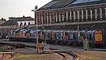 Direct Rail Services initially operated from a base at the nuclear reprocessing plant in Sellafield, but in 1998 moved into Carlisle Kingmoor depot which had been disused since 1987.[43][44] A second depot was opened at Crewe Gresty Bridge in March 2007. This is on the site of a former wagon works.[45][46] It also operates the Motherwell depot, where it carries out inspection work and re-fuelling.[47]