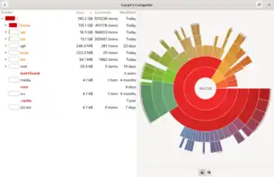 Disk Usage Analyzer is a graphical disk usage analyzer for GNOME. It was part of GNOME Core Applications,[2] but was split off for GNOME 3.4. It was originally named Baobab after the Adansonia tree. The software gives the user a menu-driven, graphical representation of what is on a disk drive.[3] The interface allows for selection of specific parts of filesystem being scanned so a single folder, the entire filesystem, and even remote folders and filesystems can be scanned.[4] The graphical representation can be switched between a ring chart and a treemap chart so the presentation can be tailored to the specific content being scanned.[5]