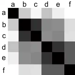 These data can then be viewed in graphic form as a heat map. In this image, black denotes a distance of 0 and white is maximal distance.