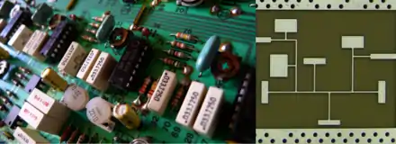 Planar formats began to be used with the invention of stripline by Robert M. Barrett. Although stripline was another wartime invention, its details were not published[71] until 1951. Microstrip, invented in 1952,[72] became a commercial rival of stripline; however, planar formats did not start to become widely used in microwave applications until better dielectric materials became available for the substrates in the 1960s.[73] Another structure which had to wait for better materials was the dielectric resonator. Its advantages (compact size and high quality) were first pointed out[74] by R. D. Richtmeyer in 1939, but materials with good temperature stability were not developed until the 1970s. Dielectric resonator filters are now common in waveguide and transmission line filters.[75]