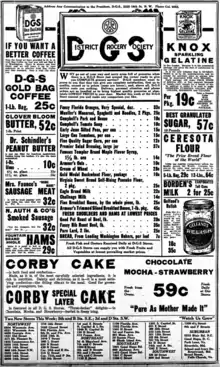 - 1 2 District Grocery Stores advertisement published in the Evening Star on November 11, 1921