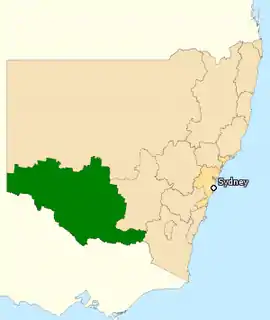 The division is located in the far south-western area of the state and includes Albury, Corowa, Narrandera, Leeton, Griffith, Deniliquin, Hay, Balranald and Wentworth.