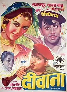 Diwana (lit.'Crazy lover') is a 1967 Indian Bollywood film directed by Mahesh Kaul. The film stars Raj Kapoor, Saira Banu and Lalita Pawar in pivotal roles.[1][2] The film, made under the Anupam Chitra production banner had music by Shankar–Jaikishan, with lyrics by Hasrat Jaipuri and Shailendra.[3] Some songs are still popular like "Diwana Mujhko Log Kahein ", "Jisne Tumhe Chand Si Surat", "Hum To Jate Apne Gaon" and "Tumhari Bhi Jai Jai". This film is also remembered for Kamal Kapoor's strong performance as Raj Kapoor's father.