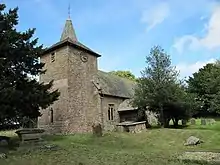 The Grade II* Church of St Bartholomew (listed on 11 June 1959), dates to the 12th and 13th century and was largely rebuilt by Thomas Nicholson in 1880. Of sandstone with ashlar dressings, it comprises a nave, chancel, a south porch, and a west tower. The nave and chancel, under a continuous slate roof line, has three interior bays in the nave, and one in the chancel. The two-stage tower roof is pyramidic with a shingled octagonal broach spire, the north and west walls of the belfry stage with louvered abat-son, the south with a clock face. The towers two bells date to 1701 by Abraham Rudhall, and 1703 by Isaac Hadley, 1703. The south porch is 19th century, gabled and timber-framed. The church interior also dates to the 19th century. The nave ceiling is wood-beamed and trussed, that of the chancel barrel vaulted. Fixtures and fittings include a 19th-century panelled reredos, font and pulpit, and a 17th-century altar table and parish chest. The chancel contains an 1880 stained glass east window by Done and Davies of Shrewsbury, and 18th- and 19th-century wall tablets. At the south-west from the porch is a Grade II 14th-century octagonal stone base with steps, previously to hold a churchyard cross.[23][24][25][26]