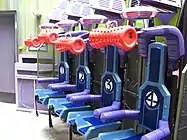 Riders first enter a Latverian-themed embassy containing the science laboratory of Doctor Doom. The ride's entrance contains televisions showing fictional propaganda films heralding the glory of Latveria and Doctor Doom's latest invention, and its intimidating ability to defeat the Fantastic Four using the primary additive of pure fear, hence the menacing title of the ride.[4] The waiting line takes the guests through a series of dark, elongated hallways, painted with the vibrant theme colors of purple, blue, lime green, and orange. The ride's narrative places riders as test subject of Doctor Doom. The theming sets up the rider as captive who will have their fear extracted for Doctor Doom's weapon.[5][6]