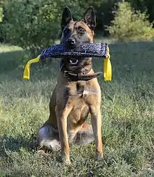 A bite tug is an important drive and retrieve building tool used in dog training. It is used for police, military and Schutzhund dog training.[1] Bite tugs are perfect for puppies but can be used for training adult dogs as well.[2]