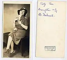 Scanned portrait photograph from family collection, with stamp from Venice Photo Shop, 1402 Ocean Front, Venice, California on the rear and a handwritten note which refers to her mother, Bertha Isbell