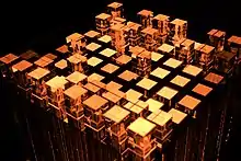 | Chess Block | 2013 | An illuminated colour changing chess board primarily fabricated from optical glass | Glass, LED, electronics, stainless steel. |