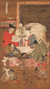 Emperor Dongyue (or Dongyue Dadi Chinese: 東嶽大帝; lit. 'The Great Emperor of the Eastern Peak') is a Daoist deity of the sacred mountain Mount Tai and judges what realm of Saṃsāra a person will be reborn in.[1] He is also believed to be the leader of a large bureaucratic celestial ministry overseeing the maintenance of the Book of Life (生死簿), a register of the due dates on which each and every human soul must be summoned before the Judges of Hell for judgement.[2] Dongyue Dadi is also considered significant in Chinese Buddhism.[3] He is the personification of Cangdi as the "Great Deity of the Eastern Peak" (东岳大帝), which is Mount Tai. As the incarnation of Mount Tai, he is the holy messenger of communication between heaven and the world, and the patron saint of the emperors of all dynasties who was ordered by the sky to govern the world.[4]