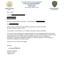 Letter from the SFPD's Legal Division detailing that the case is still active, and therefore they are unable to release any information.