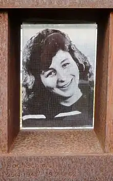 Dorit Schmiel (April 25, 1941 – February 19, 1962) was a German seamstress who became the thirteenth known person to die at the Berlin Wall. Schmiel was fatally shot by East German border guards while attempting to escape from East Berlin to West Berlin with a group of friends, including her fiancé. Schmiel was one of only eight women to die at the Berlin Wall, and at 20 years-old was the second youngest woman victim.