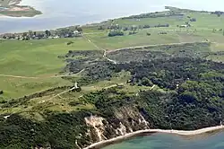 With much of its cliffed coast still active it represents an important landscape in the West Pomeranian Lagoon Area National Park and is part of protection zone II. Numerous footpaths run through its varied countryside.