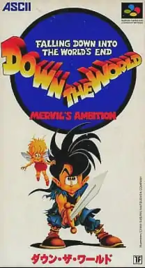 Down the World: Mervil's Ambition[2] is a role-playing video game (RPG) developed and published by ASCII Corporation for the Super Famicom. The plot follows the knight Gao, tasked with accompanying a hero (the player) in rescuing an ailing princess and preventing the end of all life.