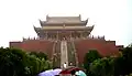 The Dragon Pavilion or Wanshou Pavilion was one of the buildings of the Song imperial palace. It was destroyed and rebuilt many times throughout its long history. The current design was first built during the reign of the Kangxi Emperor during the Qing dynasty on the foundations of the old Song imperial palace. It was destroyed several times by strong storms and wars. A news magazine article from 1948 describes the Dragon Pavilion as burned during the Chinese Civil War.[4] Heavy rainstorms and a lightning strike cause the pavilion to collapse in 1994.[5] After each disaster, the building has been reconstructed again.