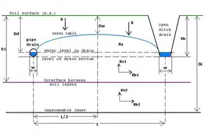 - ↑ H.P.Ritzema, 1994, Subsurface flow to drains. Chapter 8 in: H.P.Ritzema (ed.), Drainage Principles and Applications, Publ. 16, pp. 236-304, International Institute for Land Reclamation and Improvement (ILRI), Wageningen, The Netherlands. ISBN 90-70754-33-9