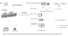 Typical pathways for agricultural drainage and the occasionally used pathways for treatment and reuse
