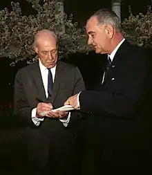 ![]() Pearson (left) with Lyndon Johnson in 1964 | |