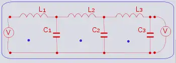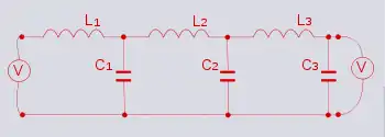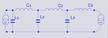 Filters designed using Cauer's topology of the first form are low-pass filters consisting of a ladder network of series inductors and shunt capacitors.