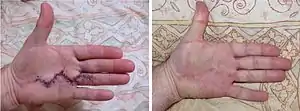 - ↑ Foucher, G (2003). "Percutaneous needle aponeurotomy: Complications and results". The Journal of Hand Surgery. 28 (5): 427–31. doi:10.1016/S0266-7681(03)00013-5. PMID 12954251. S2CID 11181513.