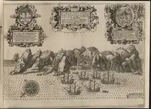 Whilst Keigwin's party was starting its climb Munden sailed to the fort and began to bombard it. For a long while, as he waited for the rest of his squadron to arrive, Munden took the brunt of the fort's response in a single vessel.[7] The Dutch surrendered at 6 pm on 5 May, before the arrival of Keigwin's men.[5][7] Munden discovered that Dutch ships were expected to arrive in the coming days and left the Dutch flag flying from Sugar Loaf Hill as a ruse of war. He was able to capture most of a convoy that arrived in the port.[7]