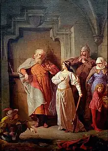 In 1377, Dymitr and his brother Iwan received lands (including Goraj) from Louis I of Hungary (Louis was for a period a king of Poland).[1][2] Dymitr was one of the most notable supporters of Louis in Poland, possibly even his friend, and took part in important diplomatic missions on behalf of Louis.[1][2] Dymitr became a mentor and adviser of the Louis daughter and Polish queen Jadwiga of Poland. He (successfully) opposed her marriage to William, Duke of Austria, an event which Jan Długosz described in his chronicles, and Jan Matejko and Wojciech Gerson reflected in their paintings. Both depict Jadwiga with an ax, supposedly taken for hacking gates, locked to prevent her running away with William, and Dymitr stopping her.[1][2] He was involved in her marriage with Władysław Jagiełło (Jogaila), and received significant lands from him as well, particularly when Ruthenian territories were passed from the Grand Duchy of Lithuania to the Kingdom of Poland.[1][2] Dymitr became a strong supporter of Jagiełło, his trusted envoy in diplomatic missions, and took part on his side during the Polish–Teutonic Wars.[5]