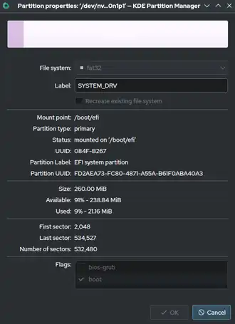 Example of an EFI system partition as shown by KDE Partition Manager