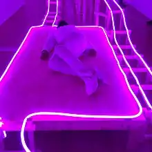 EJ Hill is known for his durational performances in which he performs a simple gesture for prolonged periods, often to the point of physical exhaustion.[3] In 2016 the artist created "A Monumental Offer of Potential Energy" at the Studio Museum in Harlem. The work included a large wooden model roller coaster that Hill lay on at all times the museum was open during the three-month exhibition. In 2017 Hill was included in the Underground Museum's exhibition "Artists of Color".[4][5][6][7]
