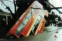 On 3 March 1988, Earlham Road was the scene of the bizarre sinking of a double-decker bus.[2] The cause of the event was found to be the collapse of a Medieval chalk mine discovered under the road.[3] The source of the photograph circulated across the globe via various internet humour websites and email circulars is not known; the image shown is from a different source.