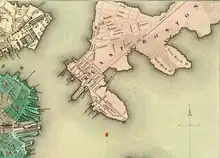 As early as 1801, William H. Sumner, who had inherited a large tract on Noddle's Island, proposed that the federal government of the United States create a turnpike to connect Massachusett's North Shore (along with Sumner's property on Noddle's) to Boston, arguing that such a road would create a valuable, direct route across Boston's harbor, making it easier for Boston, at the time an isolated peninsula surrounded by water, to expand: "There is no doubt but that the necessities of the town of Boston will some time require a connection with Noddle's Island."[8] When this plan was rejected in favor of a route through Chelsea (a route, not coincidentally, that left the Boston navy yard in nearby Charlestown with ocean access), Sumner moved onto other plans to improve Noddle's value.