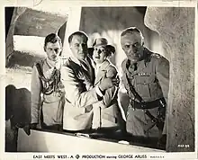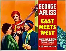 East Meets West is a 1936 British drama film directed by Herbert Mason and starring George Arliss, Lucie Mannheim, Godfrey Tearle and John Laurie. It was made at the Lime Grove Studios in London.[1] The film's art direction was by Oscar Friedrich Werndorff.
