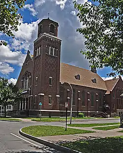East Side Presbyterian Church, now known as Parsells Avenue Community Church, is a historic Presbyterian church located in the Beechwood neighborhood of Rochester, Monroe County, New York. The church was built in 1925-1925 and is a large rectangular brick building with cast stone trim in the Romanesque Revival style. The church features a tall engaged square tower with an octagonal cupola at its northwest corner. Attached to the church is a two-story education wing constructed between 1909 and 1911. It housed the original church and is also in the Romanesque Revival style.[2]