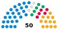 Since the last boundary changes in 2017 the council has comprised 50 councillors representing 50 electoral divisions. Elections are held every four years.[23]