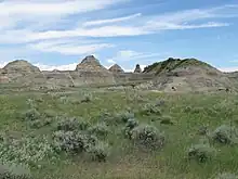 Though the prairie landscape of eastern Montana has traditionally been considered a part of the Great Plains, a recent (early 2010s) study has shown that, at least in some ways, the biomes of Eastern Montana have more in common and share more species with the Intermountain West scrub steppes and the Palouse of Eastern Washington than they have with the neighboring plains of The Dakotas.[5] Some parts of eastern Montana, in areas most prone to drying chinooks, have near-desert conditions and scrub rather than grassland.[6] Eastern Montana also has breaks and highlands that are widely forested, such as the Custer National Forest and areas around Fort Peck Lake, in contrast to the almost completely treeless plains of the Midwest.