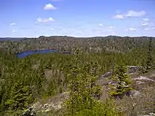 ![]() Typical softwood-forested hills and valleys of the Eastern Shore Granite Ridge. | |