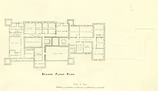 Between 1793 and 1799 the original manor house was replaced by one built in the neo-classical style for George Finch-Hatton and his wife Lady Elizabeth Murray, daughter of 2nd Earl of Mansfield to designs by Robert Adam's former draughtsman, Joseph Bonomi (1739–1808).[5] The new Bonomi designed house was built on a magnificent scale, with an imposing frontage, suites of splendid state apartments with accommodations for a large number of guests, beside the tastefully arranged garden, the interior resembles Bonomi and Robert Adam's famous decors.[4]