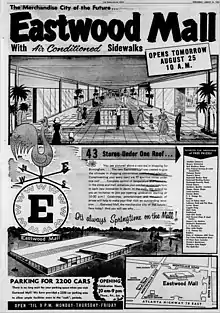 When it opened on August 25, 1960, Eastwood Mall was the second enclosed shopping mall in the Southeastern United States, being built after North Carolina's Charlottetown Mall, which opened on October 28, 1959. It remained one of the leading malls in Birmingham for nearly three decades and continued to hold its own into the 1990s.