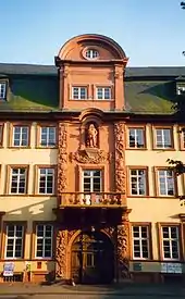 In 1707, Eberhard Friederich had the Haus zum Riesen ("House of the Giant") built in Heidelberg. The architect was Johann Adam Breunig, who was also responsible for the Jesuit college and the Old University. With the express permission of the Elector, the house was partially built using stone from the "fat tower" of Heidelberg castle. The house owes its name to the over-life-size statue of von Venningen, which was made by Heinrich Charrasky and is located on the second story of the façade.