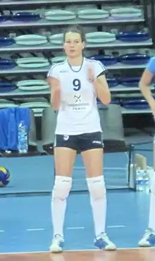The 1.80 m (5 ft 11 in) tall sportswoman plays in the outside hitter and libero positions,[5] and has a reach of 270 cm (110 in).[1]
