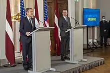 Rinkēvičs with U.S. Secretary of State Antony Blinken, 7 March 2022