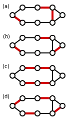 In graph theory, an edge dominating set for a graph G = (V, E) is a subset D  E such that every edge not in D is adjacent to at least one edge in D. An edge dominating set is also known as a line dominating set. Figures (a)–(d) are examples of edge dominating sets (thick red lines).