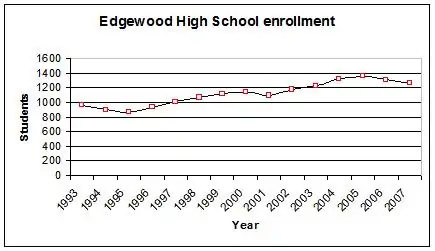 The graph below shows student enrollment at Edgewood, and its general climb since 1993:[9]