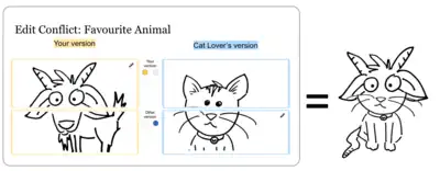- Merge, by determining if the edits are in unrelated parts of the file and combining without user intervention.